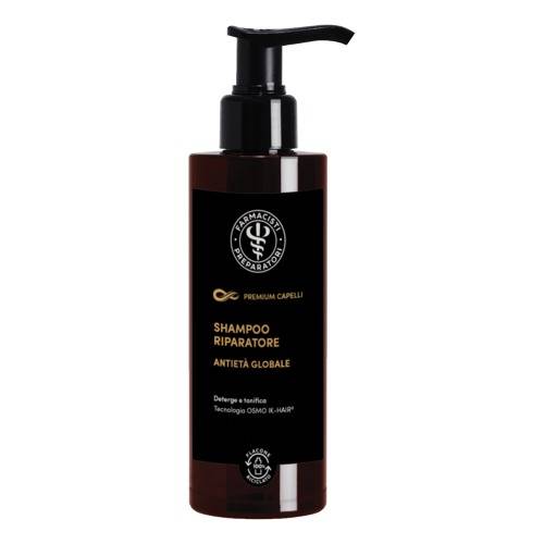 FARMACISTI PREPARATORI SHAMPOO RIPARATORE Descrizione Shampoo delicato per capelli deboli e rovinati. La sua tripla azione su bulbo, cuoio capelluto e fibra capillare rallenta l'invecchiamento dei capelli e favorisce la loro crescita. Trattamento per la detersione che ridensifica e ristruttura i capelli che, col passare degli anni, o in seguito a trattamenti specifici perdono densità e struttura, luminosità e volume. agisce su cuoio capelluto e fibra capillare: i capelli risultano riparati, densi e vitali. L'esclusiva formula contiene tensioattivi di nuova generazione ultra delicati che regalano il piacere di una schiuma morbida e delica...